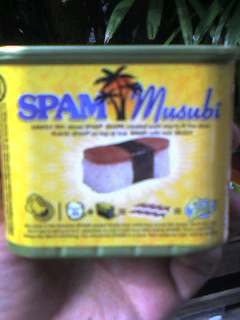 先日、期間限定のハワイアンショップを紹介されたので以前住んでいた西荻窪まで行ってきた。写真はその時に撮影した「スパム」缶。外側に描かれているのは、このスパムを使ったスパムムスビ、略して「スパムスビ」だ。