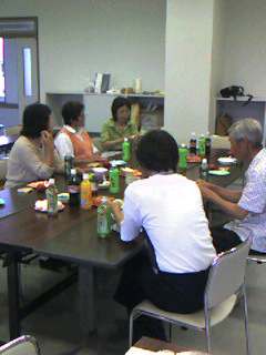 インターネット出店道場基礎編(穴水会場)もついに最終回を迎え、開始前に受講生の方々を交え懇親の機会を持った。事務局の吉田恵子さんの発案で、皆さんが作られた農産品やその加工品をお持ちいただき皆で食した。