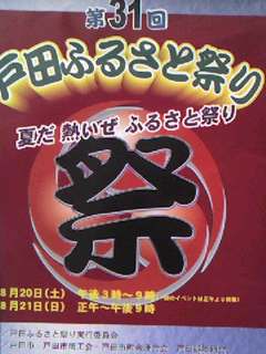 掲示板に貼ってあった戸田市ふるさと祭のポスター。今年は8月30日・31日の日程で開催される。