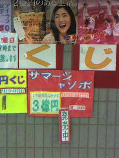 戸田公園駅改札口を出たところにある宝くじ売り場の側面にある手作りポスター。う〜む。