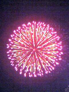花火の画像、ジャストショットですねぇ。私は今年も「花火を見に」は行けませんでした、、、。(残念。)お腹に響くあの音が大好きなんですが、、、。(あぁ残念。)