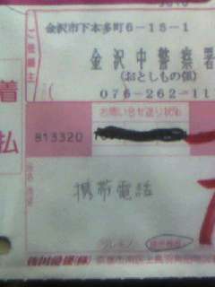 石川県警さんは私が他県の住所だということで、着払いで送ってくださった。親切な対応に、実は少し驚いた。