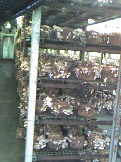 写真は菌床栽培している椎茸。椎茸が菌床のいたるところからポコポコでているのにびっくりであった。