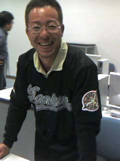 昨晩のインターネット出店道場(穴水会場)に参加された松尾さん。彼は千葉ロッテマリーンズファンである。
