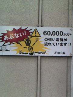 2005年11月25日 骨までビビビ! JR戸田駅下にある変電施設の入口にかかっている看板。 ぱっと見て、つい写真に撮ってしまった。 感電すると骨がビビビと見えるというマンガ的な表現! でも見る人には言いたいことがよく伝わるかも。 「携帯で撮影」カテゴリの最新記事 < 前の記事次の記事 > コメント コメント一覧 もっぷ 2005年11月25日 16:51 表現手法としては『タツノコプロ方式』と名づけたいですね。 注意をひきつけたい看板は多少オーバーなほうがよろしいようで。 ふゆさん(管理人) 2005年11月25日 17:05 もっぷさん、まいどおおきにです。 (^。^;) そうでした! タツノコアニメですりこまれたんだ! ドロンジョ様! ボヤッキ〜! トンズラ! おいらは、ヤッターマンをいつも楽しみにしていました。 kiyomi 2005年11月25日 19:27 ああ、懐かしいアニメの名前が! ヤッターヤッターヤッターマン!!ですね。 タイムボカンシリーズはず〜っと見てましたよー。 タツノコアニメはガッチャマンなんかも見てましたねえ・・・何度まねして遊んだ事か・・・。 ふゆさん(管理人) 2005年11月27日 20:15 kiyomiさん コメントありがとう。 ふふふ、懐かしいですね。 そうそう、ヤッターマン、途中でヤッターワンがやられた時は !? と思いましたが、ヤッターキングになって子供心に一安心でした。 今でも私のiPodには、タツノコアニメの歌が入っています。 埼京線の朝靄 2005年11月27日 21:46 戸田市内は新幹線と併走するので『高電圧注意』という看板はよく目にします。 武蔵浦和に新幹線が停車実現を数年前から望んでいます。 コメントフォーム 名前 コメント 評価する リセット リセット 顔 星 投稿する 情報を記憶 トラックバック