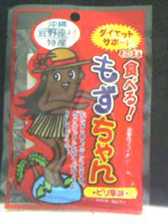 沖縄物産アンテナショップ「わした」で商品棚を見ていた時に妙に目にとまった一品。沖縄宜野座村特産ダイエットサポート「そのまま食べる!もずちゃん」である。