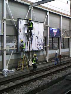 2006年04月26日 駅の広告張替作業 戸田公園駅であまりふだんは目にしない光景をみた。 駅広告の張替作業である。 監督一人、作業員3人で手際よく大きな看板から広告を剥がしていく。いつもは何時の間にか広告が入れ替っていて気にもとめないことなのであるが、その作業を目にすると、どんな段取りで作業を進めて行くのか興味を持ってしばらく観察した。作業員の皆さん、お疲れさま。 「埼京線」カテゴリの最新記事 < 前の記事次の記事 > コメント コメントフォーム 名前 コメント 評価する リセット リセット 顔 星 投稿する 情報を記憶 トラックバック