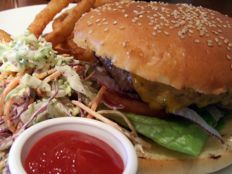 今回のハンバーガーはバンズに工夫があった。下のバンズが上のバンズよりも大きく、具だくさんではあったが、具がこぼれにくいように作っている。ただ、肉汁はこぼれる。そのためにこぼれる肉汁ををお皿で受けて、ハンバーガーを少しかじった後で、パンの断面にしみこませるようにして食べたらなかなか美味しかった。全体的には大きなハンバーガーで、男性はいいが女性が持つのは大変である。そのため、よく切れるナイフ&フォークが添えられてでてくるのであるが、やはりハンバーガーであれば両手で持ってがぶっとやりたい!