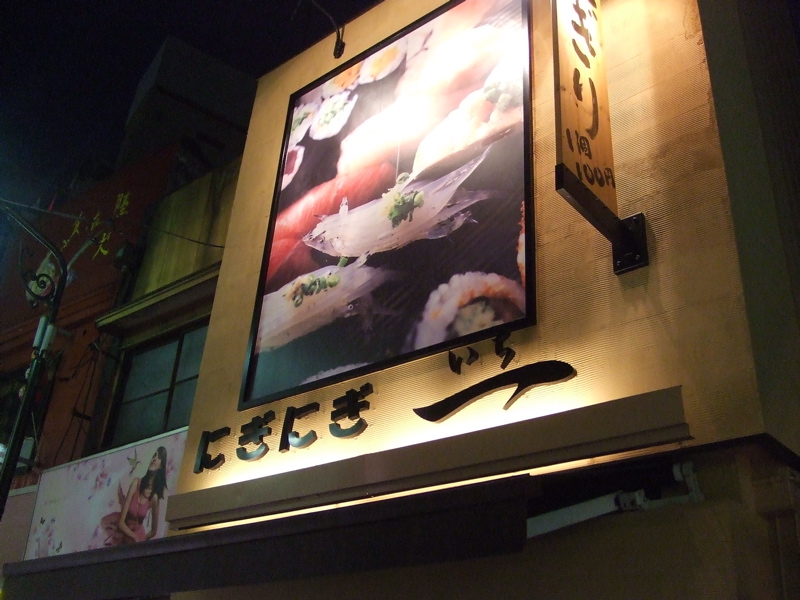 先日、手作りアイスクリーム工房ぼぼりに用事があり、東京都杉並区西荻窪に行った際、長年の友人である店長の長谷川恵さん(めぐちゃん)(注:リンク先のページの写真は今イチ。疲れている時の写真かな?実際はもっと素敵な笑顔をいつもされている方です)に、駅前に立ち食いのお寿司屋さんができているのを教えてもらった。「にぎにぎ一(いち)」という名のそのお店、カウンターのみで人が六人もはいれば一杯になるスペース。カウンターの中では若い職人さんが愛想良く寿司を握り、その奥には