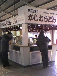 2006年12月31日 小倉駅名物かしわうどん 午前8時20分小倉駅到着。本日の一食目は小倉駅名物かしわうどんでした。 7番線ホームの駅そばでしか提供されないもので、そのうまさは「クッキングパパ(週刊モーニング連載)」でも紹介されたほどです。 同じうどんでもさぬきうどんとは味もコシもまったく違う別物だけど、これはこれでまた食べたくなるものでした。 昨年も来ましたが、店が綺麗になって店名も変わっていました(味は変わりません)。 「携帯で撮影」カテゴリの最新記事 < 前の記事次の記事 > コメント コメント一覧 ウーミーちゃん 2006年12月31日 13:07 地震でつゆをこぼさないように、 ウーミーは受付嬢に祈願しておきました! これでセンセは、受付嬢にヤケドしないと思います。 あら、間違った!w センセはメイドでした(^^)ゞ Ken 2007年05月09日 22:20 きのう、食べました。 新幹線から、大分行きのソニックへの乗り換え時間わずか7分。 走ってでも食べる価値あり! ふゆさん(管理人) 2007年05月10日 07:34 Kenさん こんにちは! おお!召し上がれましたか! そうそう走ってでも食べる価値ありですよね。私も毎年の楽しみにしています。 上に書いたように、昨年末に寄った時は、お店も少し改装されてプラットビットという名前ではなくなっちゃいましたが、味はそのままで一安心でした。 また、どうか当ブログにお立ち寄りくださいね! コメントフォーム 名前 コメント 評価する リセット リセット 顔 星 投稿する 情報を記憶 トラックバック
