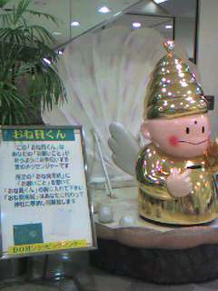 さて、前置きが長くなりましたが(おいおい!)、写真は大宮駅前ダイエー1階に置いてある人形「おね貝くん」。付属の紙にお願いことを書いておね貝くんの中に入れると、後でまとめて神社で祈念くださるとのこと。