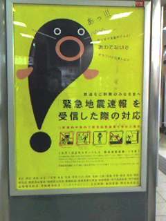 駅で見掛けたポスターです。昨年より大地震が起こる直前の振動を捉えて、数秒後に起こることを知らせる緊急地震速報が始まりました。