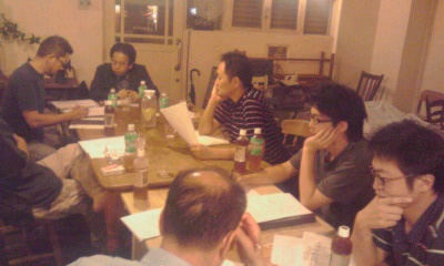 実行委員長でもあるカフェ・シバケン&野の花屋の安西さんの周りを、てつデンタルクリニックのてつさん、戸田サクラ歯科の齋藤さん、自家焙煎珈琲豆販売まめぞうの佐藤さんが囲み、きもの三京の三坂さんとカフェ黒まめの松井さんが温かく見守る光景は、さながら三國志に登場する人格者・劉備玄徳を中心とする蜀の全盛期の時のようです。