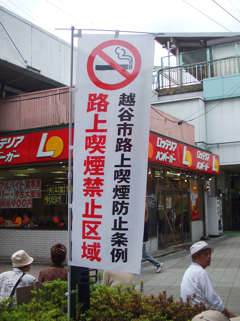 昨日、南越谷駅前で告知されている「歩行喫煙禁止」について書きましたが、その他の自治体の事例もいくつか写真撮影しているので、それらをご紹介します。自治体によって、やはり違います。土地柄が反映されているのでしょうね。