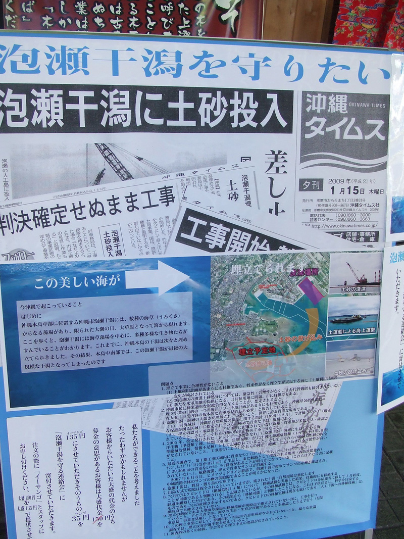 ところで、先の沖縄そばのお店、沖縄の環境問題にも取り組まれています。泡瀬干潟を守るために、その情報を積極的に広報するほか、売り上げの一部をこの問題解決のために寄付されています。