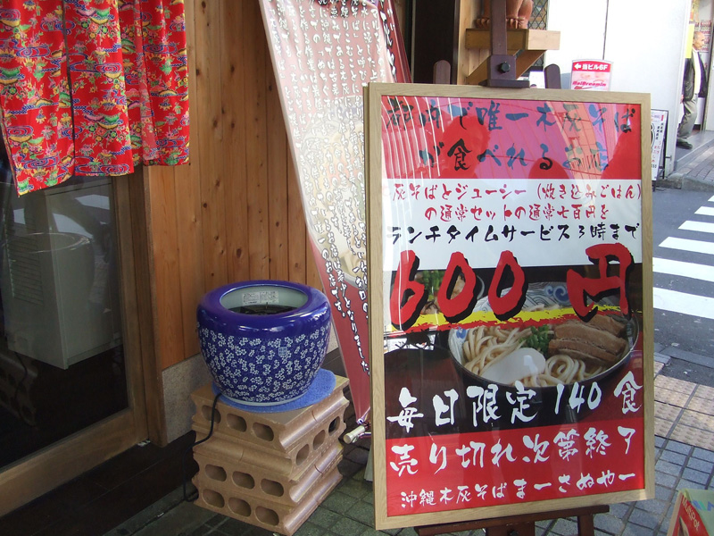 以前、台湾発のドラゴンアイス「雪花」を提供するお店があった場所に久しぶりに行くと沖縄そばのお店に変わっていました。しかも木灰そばといって本格的な沖縄そばです!