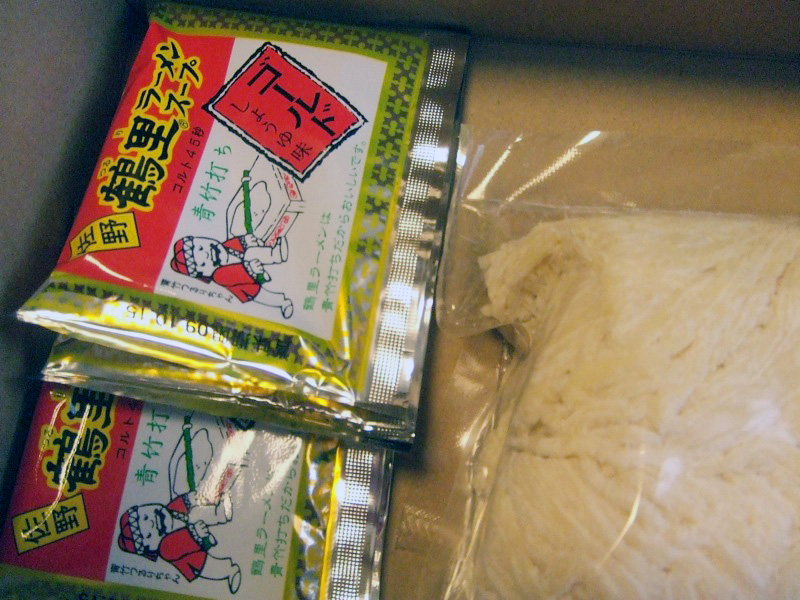ところで、私のプレゼントは「佐野生ラーメン」です。以前、仕事で足利市に向かう途上、途中下車した東武伊勢崎線館林駅構内でキャラクター青竹つるりちゃんの絵とともに「関東三大土産のひとつ」というキャッチコピーが書かれた広告をみつけ、???と思い、ブログ記事に書いたのですが、その後、ブログをご覧くださっている足利市の方からプレゼントにいただいたのでした。