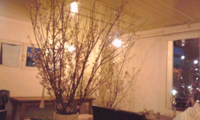 題して「お花見カフェ」。室内に本物の桜の花が溢れていました。