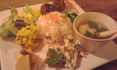 メインの料理はお花見プレート。桜のスパークリングワインや桜ジンジャーエールも美味しかったです。