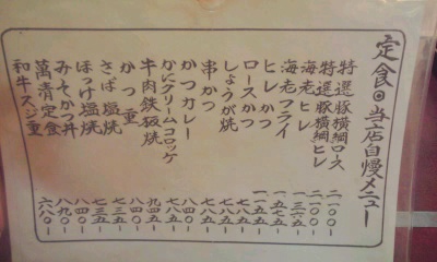 やはり最初はその店の自慢の品を食べなければ!ということで、メニューの一番右にある「特選豚横綱ロース」定食を注文しました。