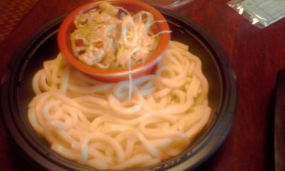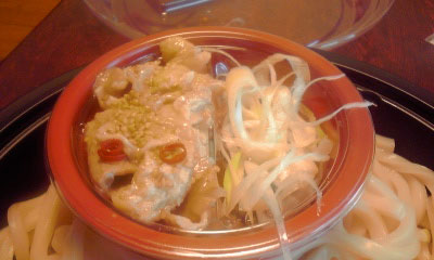このお弁当は半分くらい食べて(弟とシェアしました)、同時発売の「地粉で打った冷たい肉汁うどん」も食していみました(もちろん、弟とシェアです)。