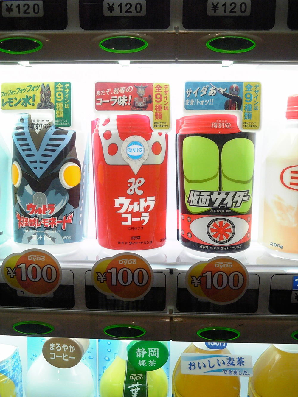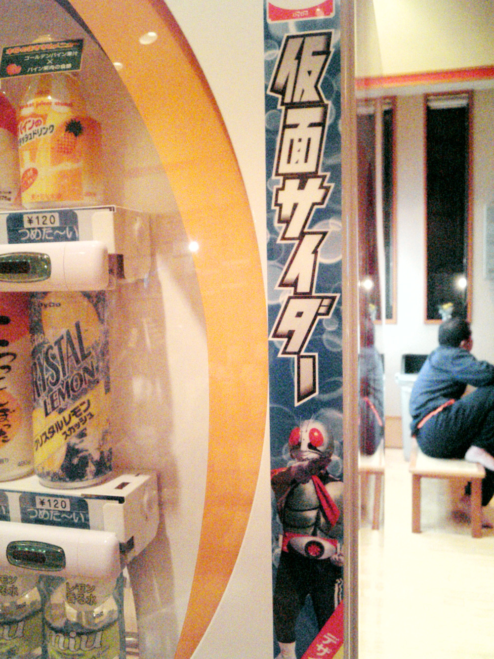 パチンコで人気があるためか、飲料の自動販売機やコンビニで「仮面サイダー」を見ることが多くなりました。