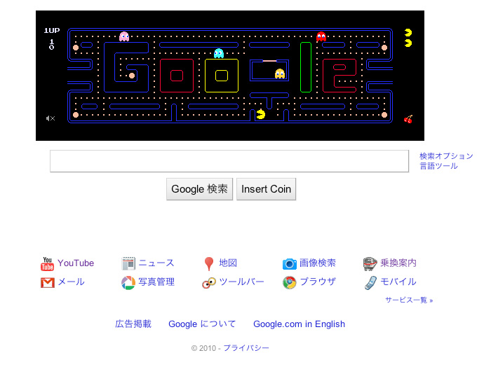 サーチエンジングーグルが、パックマンに占拠されています!