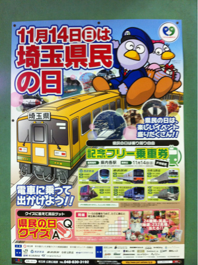 毎年この時期にブログに書いていますが、埼玉県には「埼玉県民の日」というものが制定されていて、11月14日がその日にあたり、各地でイベントが行われるほか、学校などがお休みになります。