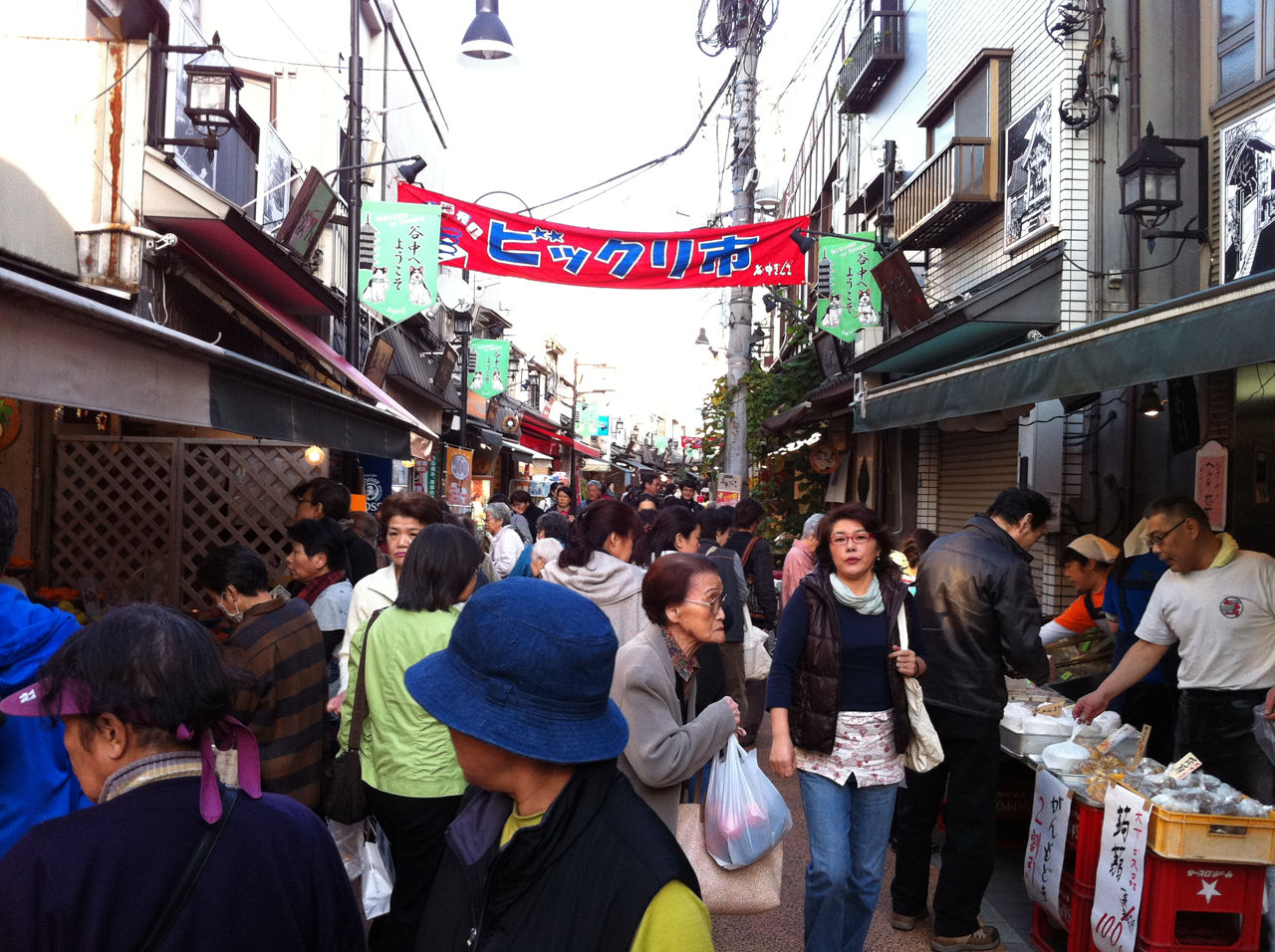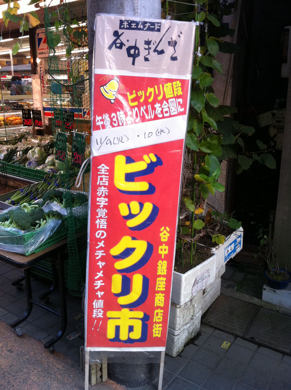 昨日、打ち合わせ先に向かう途中、近道にと通った東京・谷中銀座商店街で、ビックリ市が開催されていました。