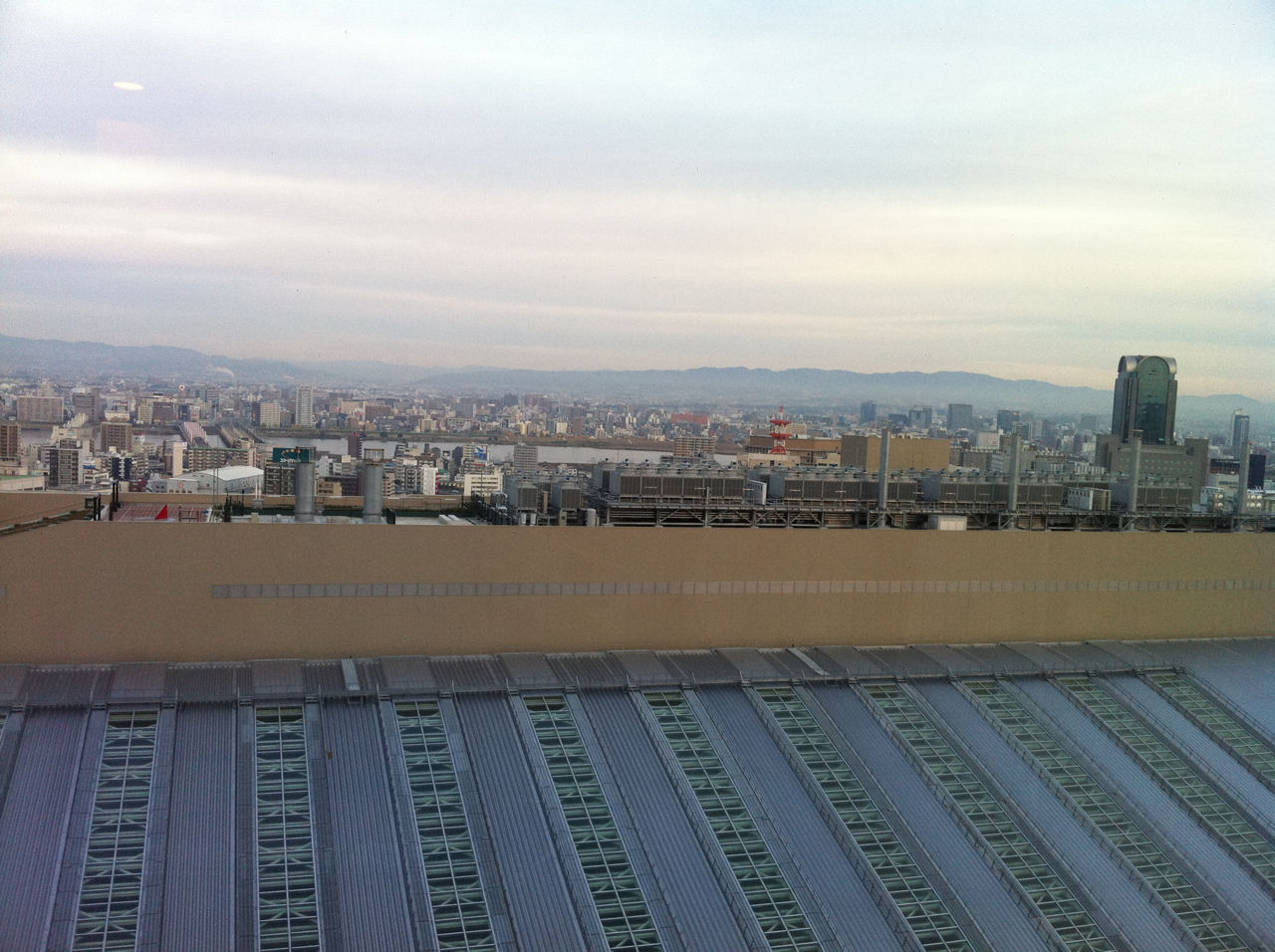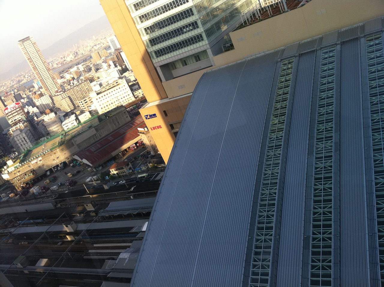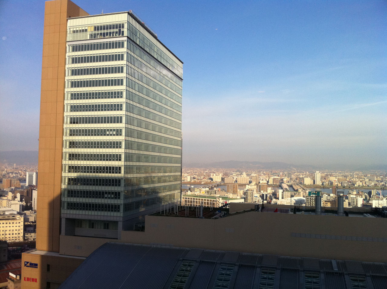 昨日、農商工連携専門家講座の視察実習で千葉県成田・山武郡などに行った後、夜に新幹線に乗り込み、22時ごろに大阪に着きました。その後、今日の仕事先が用意してくださった大阪駅直結のホテルにチェックインしたのですが、夜景をみることもなく寝てしまったのです。