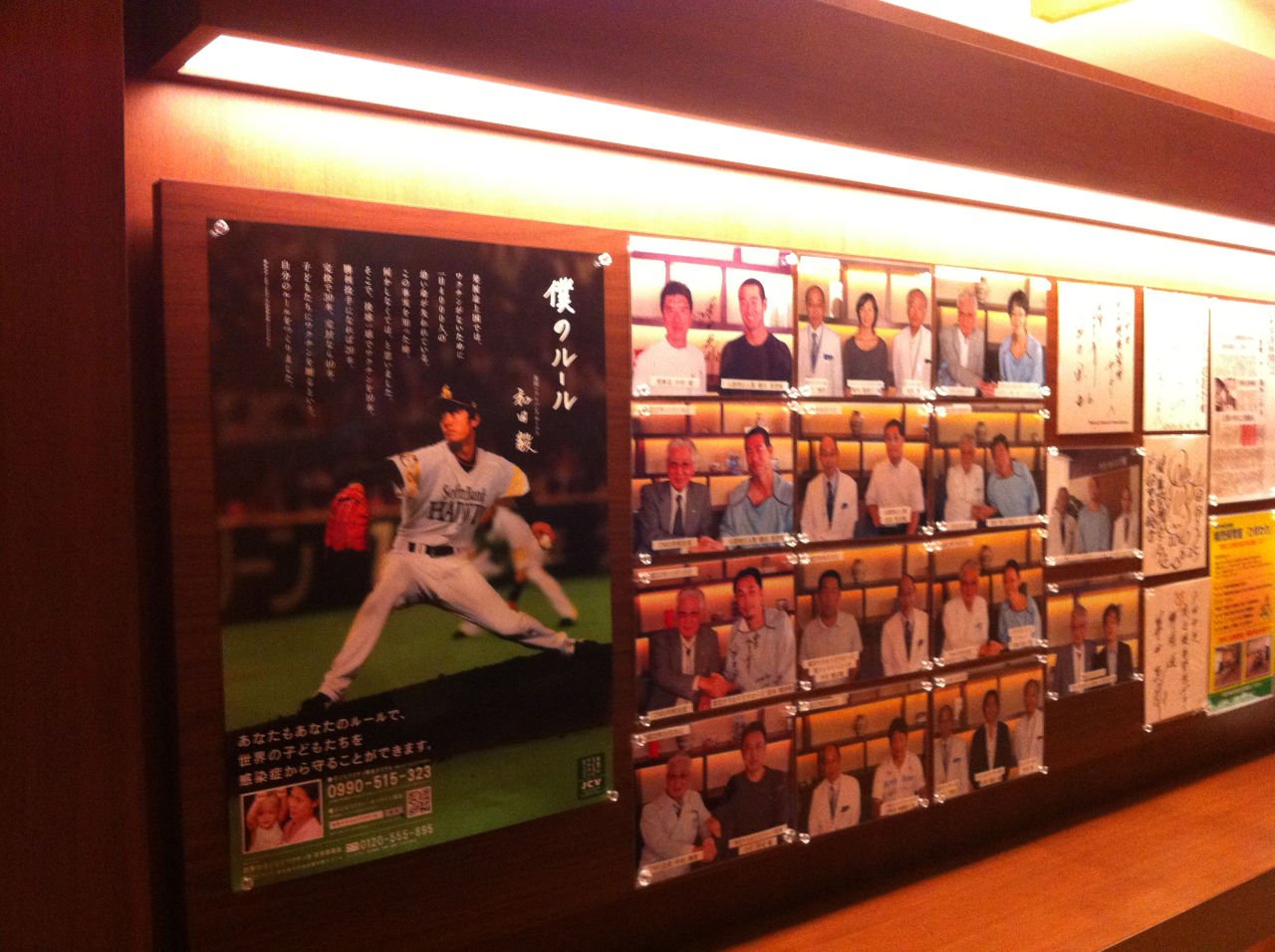 変わった(?)展示といえば、健診を受けられたプロ野球関係の方々の写真が展示されていたところです。桑田真澄投手(巨人)をはじめ、よく知っている方々の顔がありました。ジャイアンツファンの方々にはお薦めです。