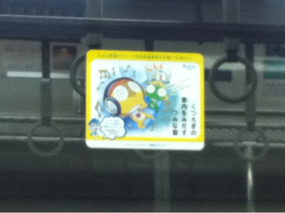 先日、西武から相互乗り入れしている東京メトロ有楽町線に乗ったところ、人気アニメ・ケロロ軍曹のキャラクターを使った乗車マナー啓発広告が窓に貼られていました。