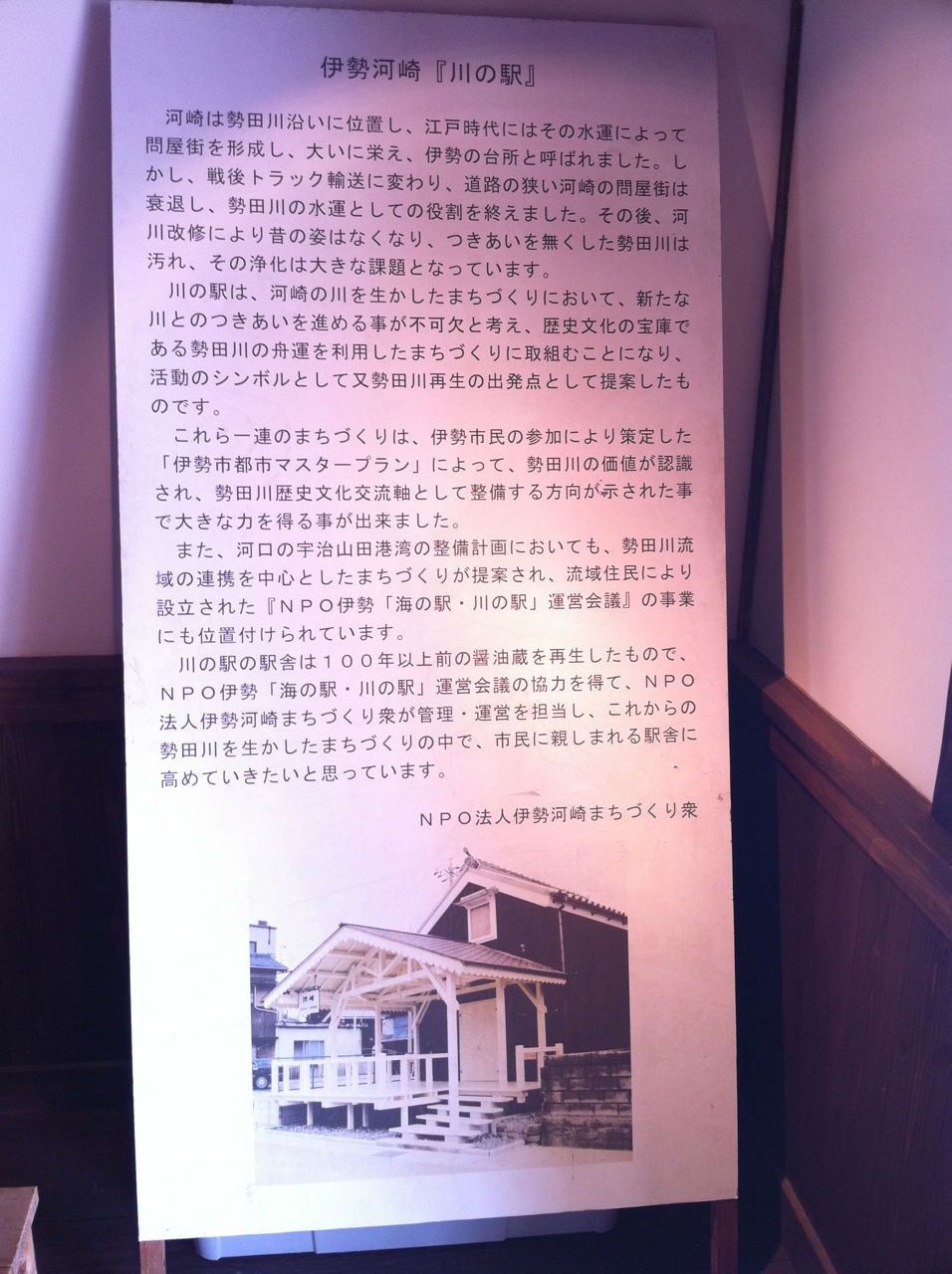 川のほとりに「川の駅 河崎」と書かれた建物がありました。