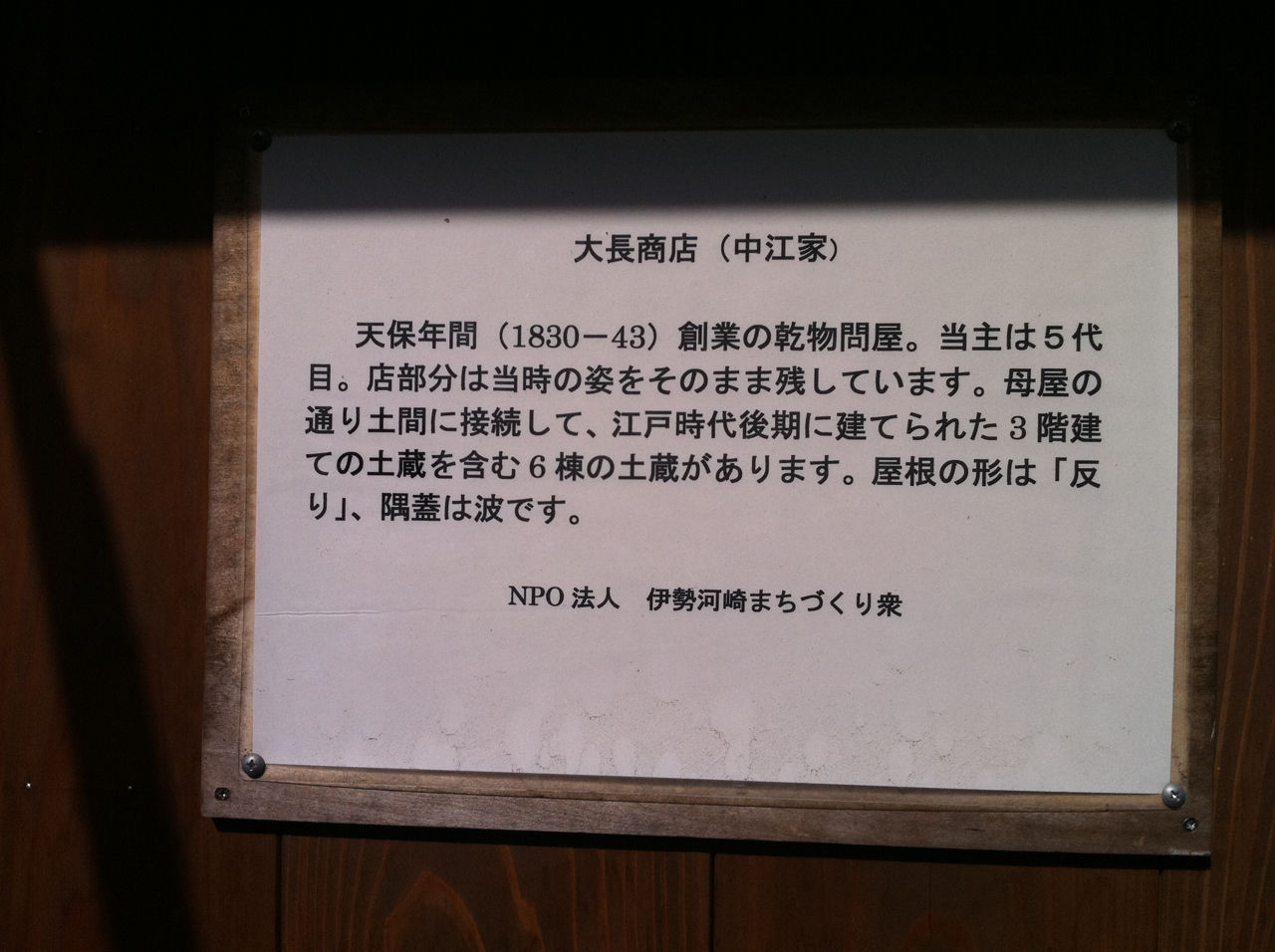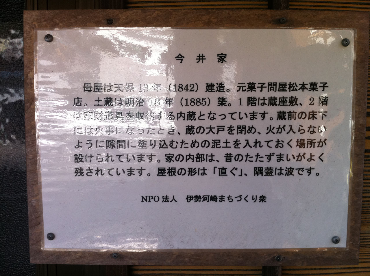 現在、この河崎地区はNPOによって整備運営が図られています。私はこの後、この河崎地区のまちづくりの拠点でもある「伊勢河崎商人館」さんにお邪魔して、いろいろお話しを伺いました。