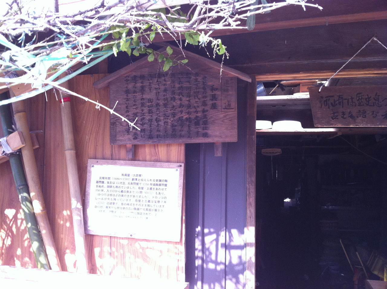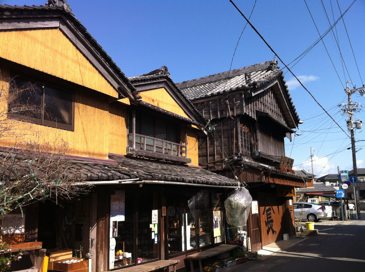 大戦時、伊勢も空襲にあいましたが、幸いなことにここは残り、昔から続く街並みが、「観賞用」ではなく、今なお使われながら現代に続いております。道幅は昔の道にしては少し広めですが、それは大八車を引いて荷を運ぶためだったからだそうです。町の横には勢田川が流れ、かつてはその川をつかって、伊勢内外との商いを行っていたとのこと。きっと私のご先祖様も使っていたに違いないと思いました。