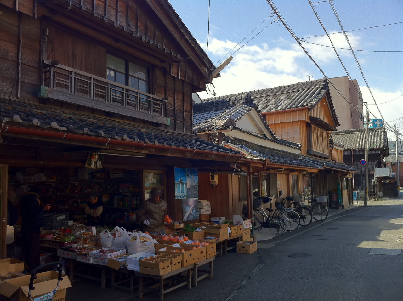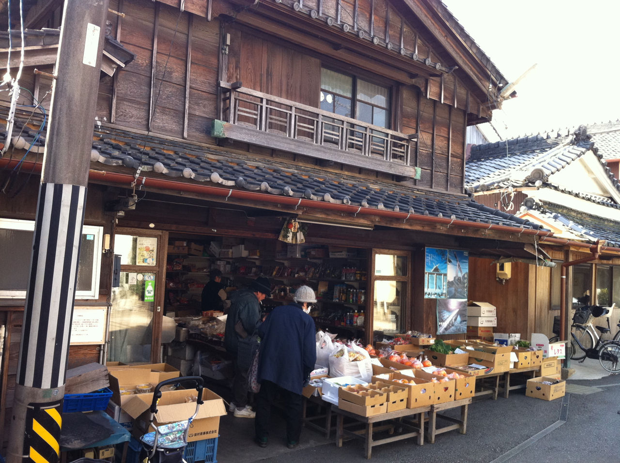 今でも営業されている青果店です。地元の方が買いにこられていて、なんだか子どもの頃に見たような懐かしい光景でした。