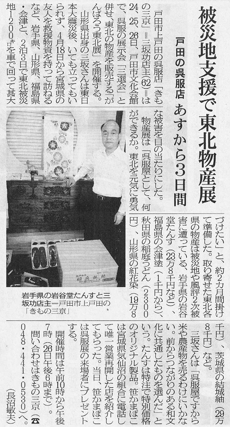 ʪ»ºÅ¸¤Ï¡Ö¸âÉþ²°¤È¤·¤Æ¡¢²¿¤¬¤Ç¤¤ë¤«¡£ÅìË̤ò¸µµ¤¤Ëͦµ¤¤Å¤±¤¿¤¤¡×¤È¡¢Ìó£²¥«·î´Ö³Ý¤±¤Æ½àÈ÷¤·¤¿¡£¼è¤ê´ó¤»¤¿ÅìË̳Ƹ©¤Îʪ»º¤ÏÈïºÒÃϤäÉ÷ɾ£²¼¡Èï³²¤ËÁø¤Ã¤Æ¤¤¤ë¡¢´ä¼ê¸©¤Î´äëƲ¤¿¤ó¤¹¡Ê23Ëü£¸Àé±ß¤Ê¤É¡Ë¡¢Ê¡Å縩¤Î²ñÄÅÅɡʣ±Àé±ß¤«¤é¡Ë¡¢½©Åĸ©¤Î°ðÄí¤¦¤É¤ó¡Ê2300±ß¡Ë¡¢»³·Á¸©¤Î¹È²ÖÀ÷¡Ê19Ëü£¸Àé±ß¡Ë¡¢°ñ¾ë¸©¤Î·ë¾ëÄÝ¡Ê29Ëü£¸Àé±ß¡Ë¤Ê¤É¡£