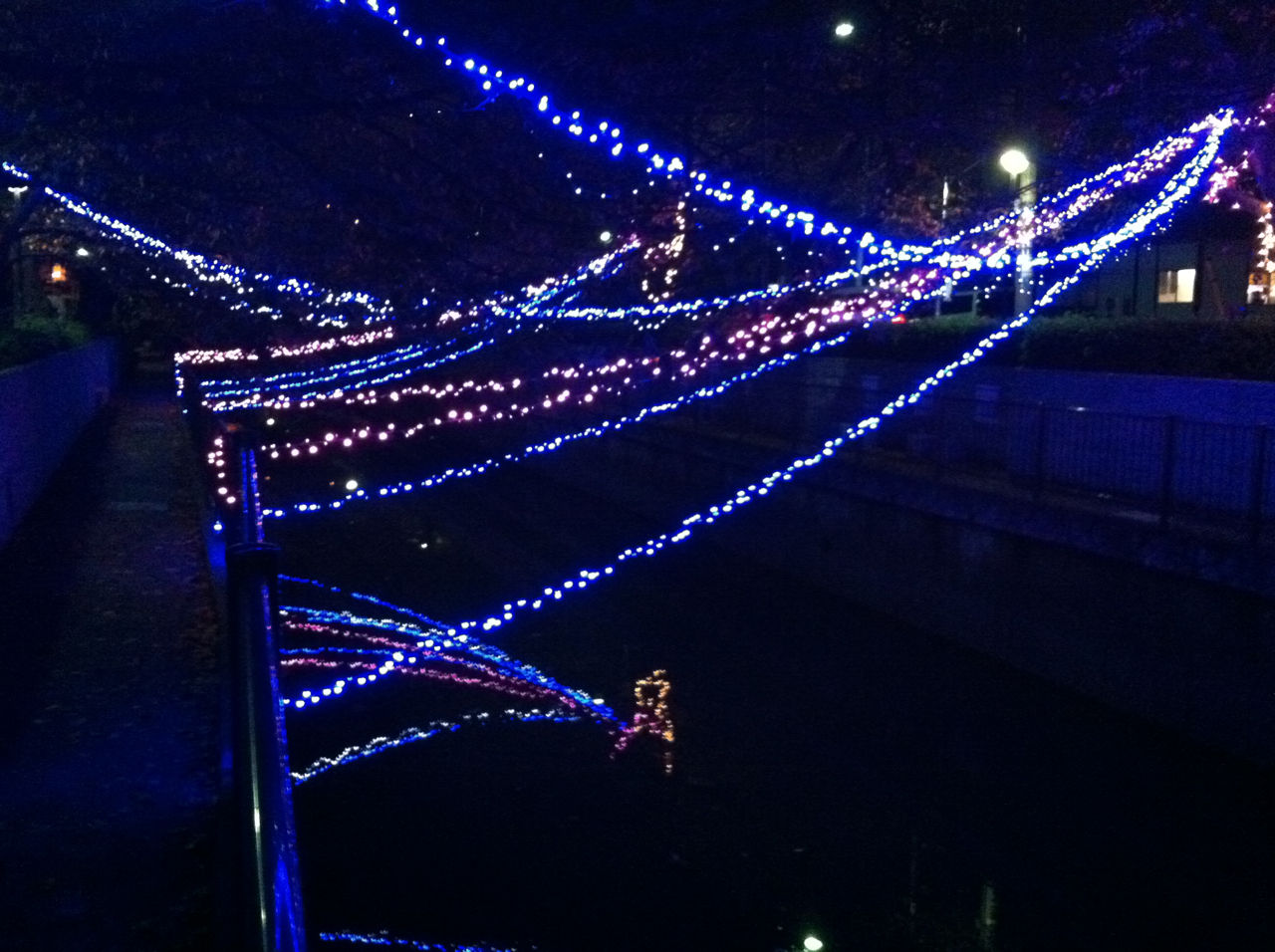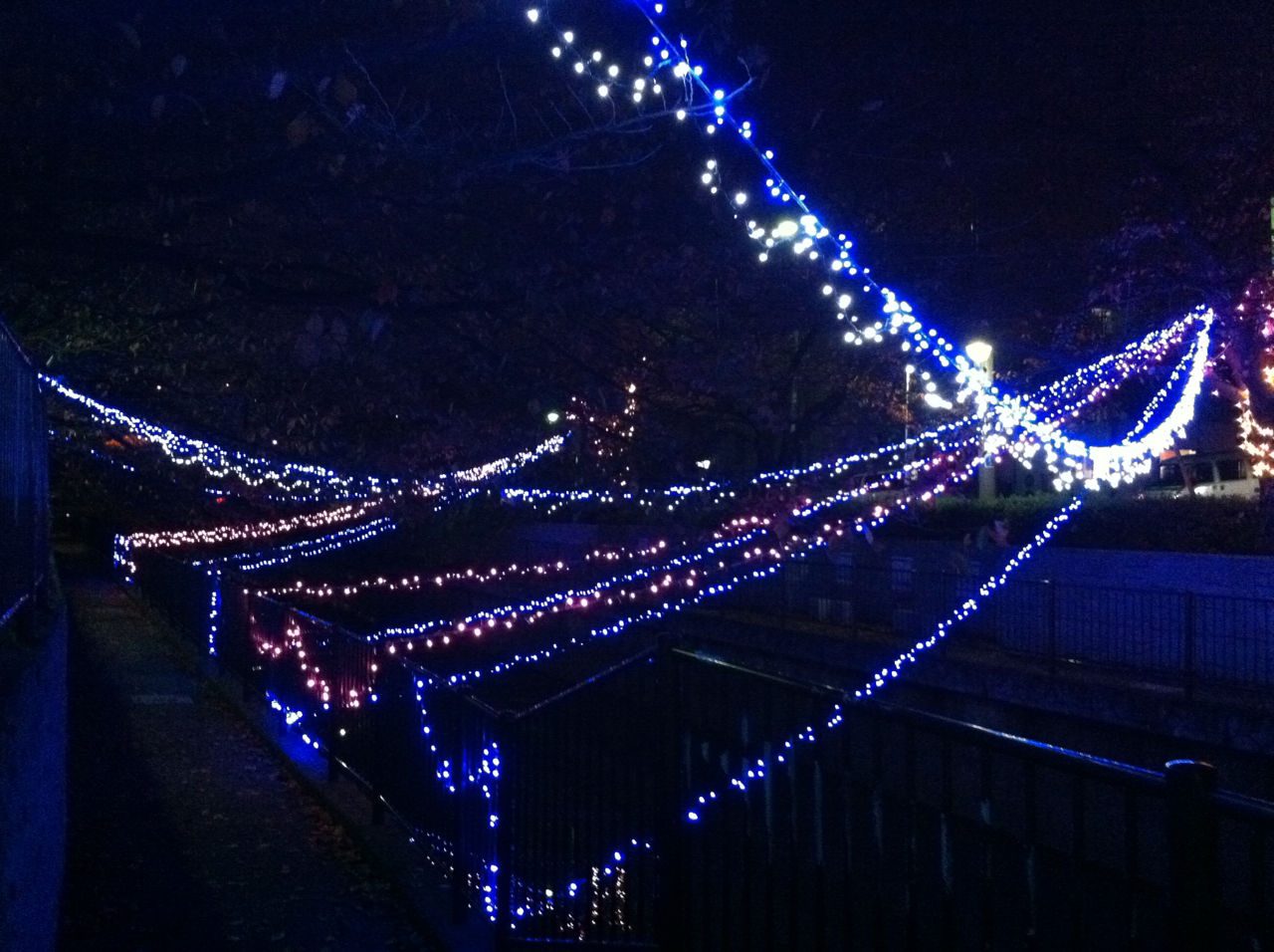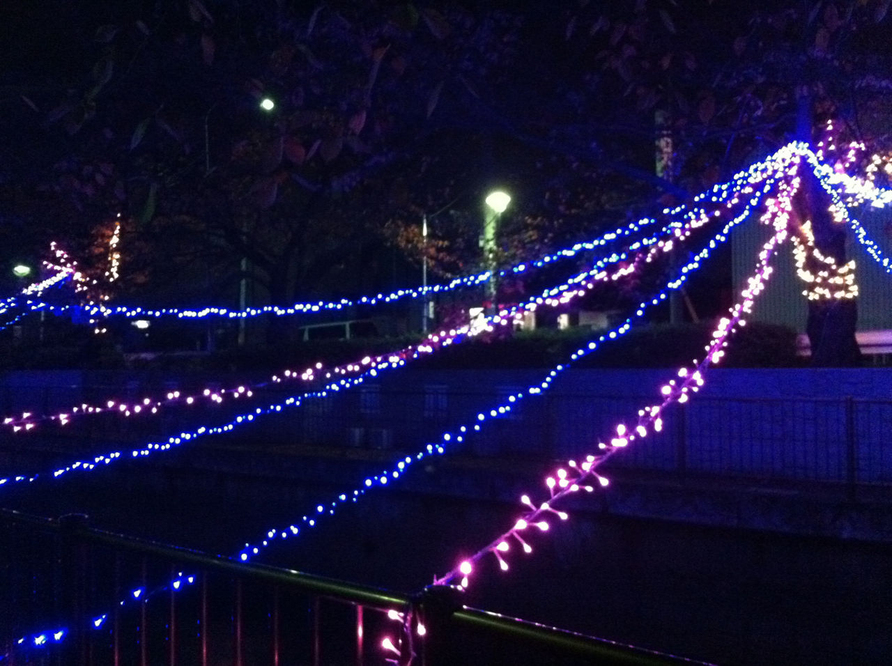 こちらは川をまたぐ形でかけられていて、川面に映る光も楽しめます。