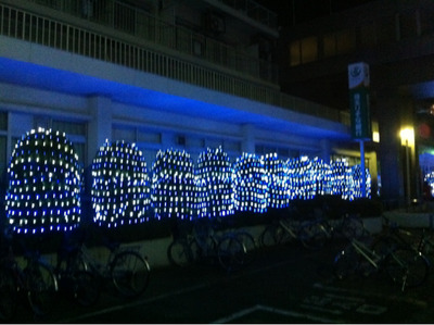 写真は戸田市こどもの国前から戸田中央総合病院へと続く道途上にあるイルミネーション。気温が下がり澄み切った空気の中でとても美しい光を放っています。