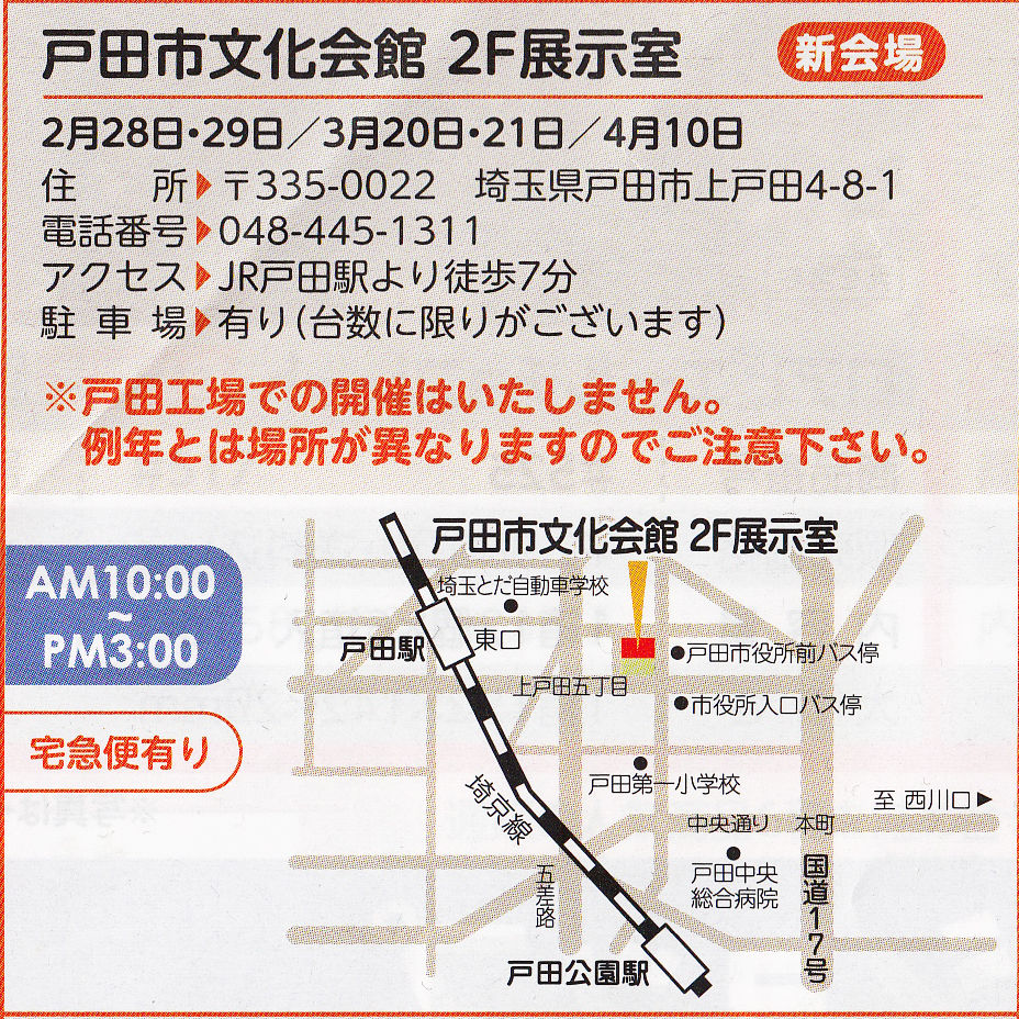 それからもうひとつ・・・・販売する会場が、従来の下戸田の工場から、戸田市文化会館に変わります。これは大きな違いですね。