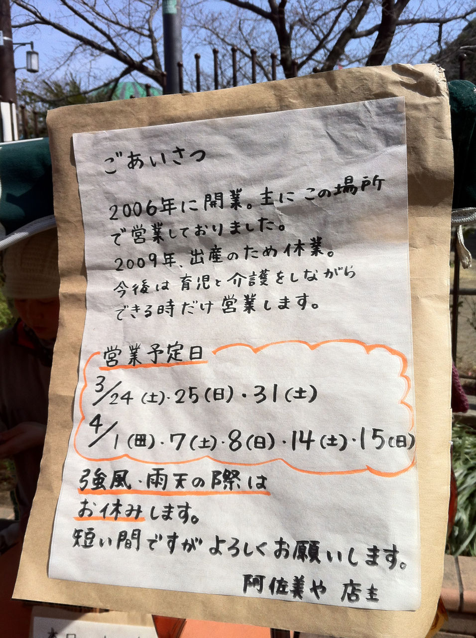 4月15日まで営業されるとのこと。