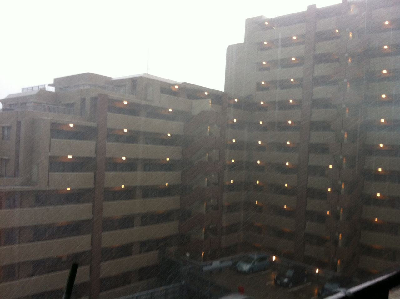 外をみると、横殴りの激しい雨。