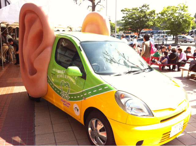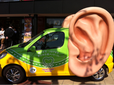 2012年05月13日 (番外編)大きな耳の・・・車!(^◇^;) 今日はとあるバスハイクに参加して、茨城県に行って来ました。 写真はその途上に立ち寄った守谷サービスエリアに展示されていた車です。 車ですが・・・耳がある! 何ですかこれは?と思いつつ、側面をみると、「届けます、つなげます、東日本応援メッセージ」とありした。 なーるほど、キャンペーンカーだったんですね。 それにしても目立つ車でした。私の趣味ではないですが。(^◇^;) カテゴリなしの他の記事 < 前の記事次の記事 > コメント コメントフォーム 名前 コメント 評価する リセット リセット 顔 星 投稿する 情報を記憶 トラックバック