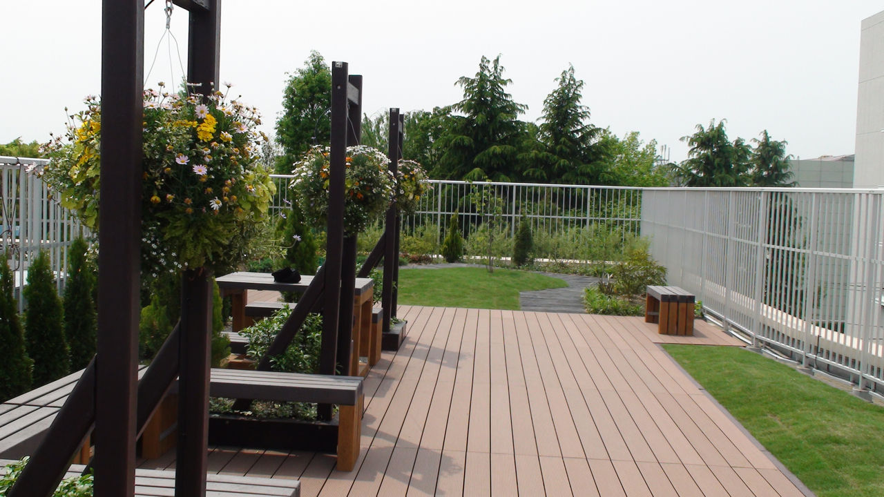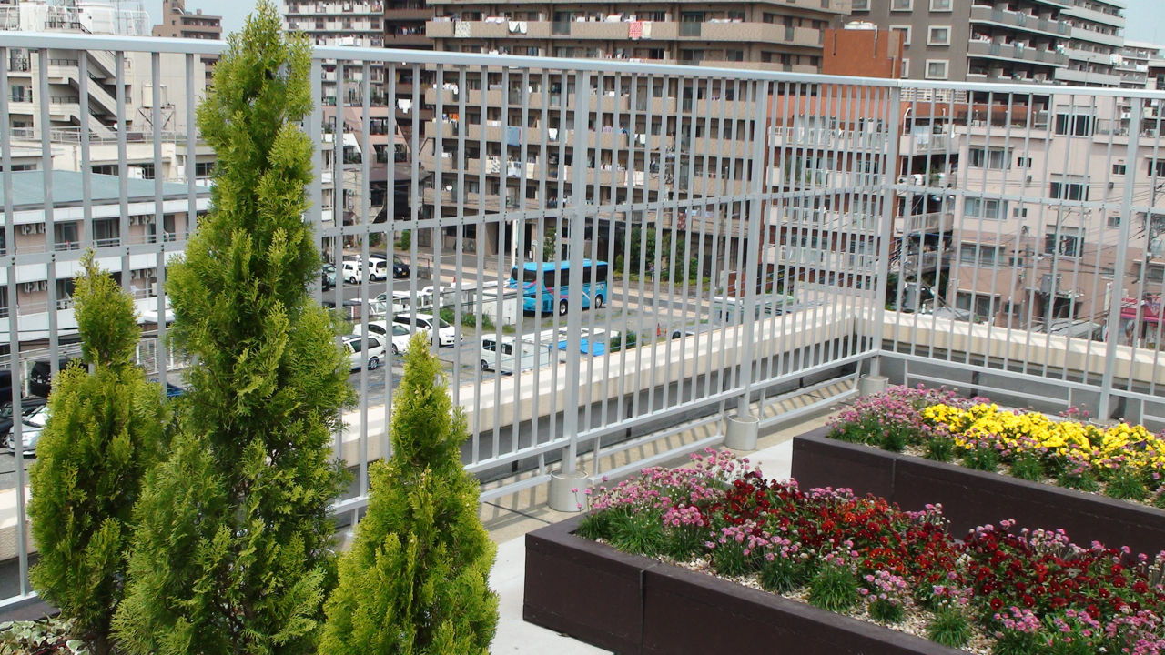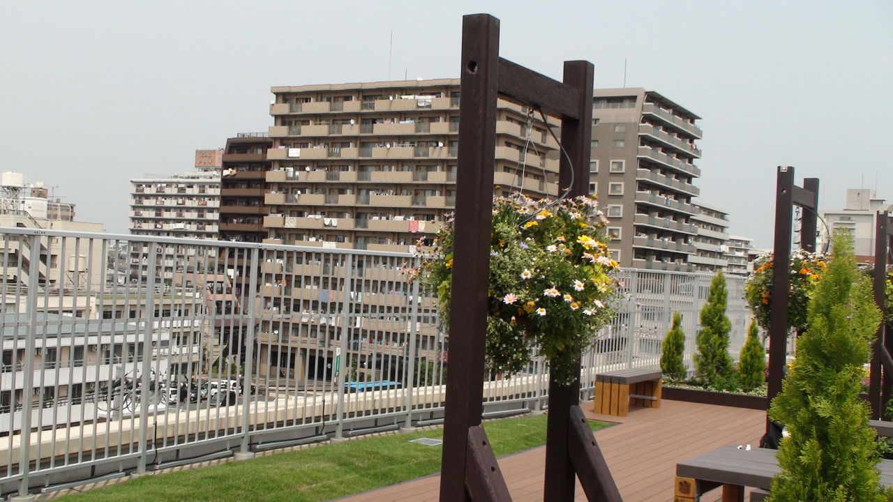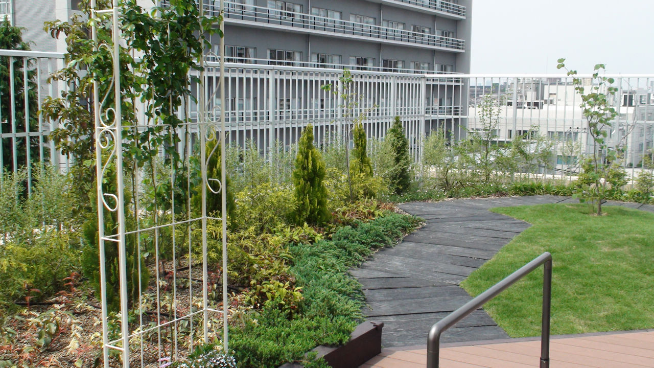 戸田市の戸田公園駅を戸田市役所側に降りて徒歩数分。戸田中央総合病院や戸田市こどもの国横にある戸田中央リハビリテーション病院の屋上には、戸田市が開発して商標登録している屋上緑化システム「フェルトガーデン戸田」の技術を使った屋上緑化庭園があります。