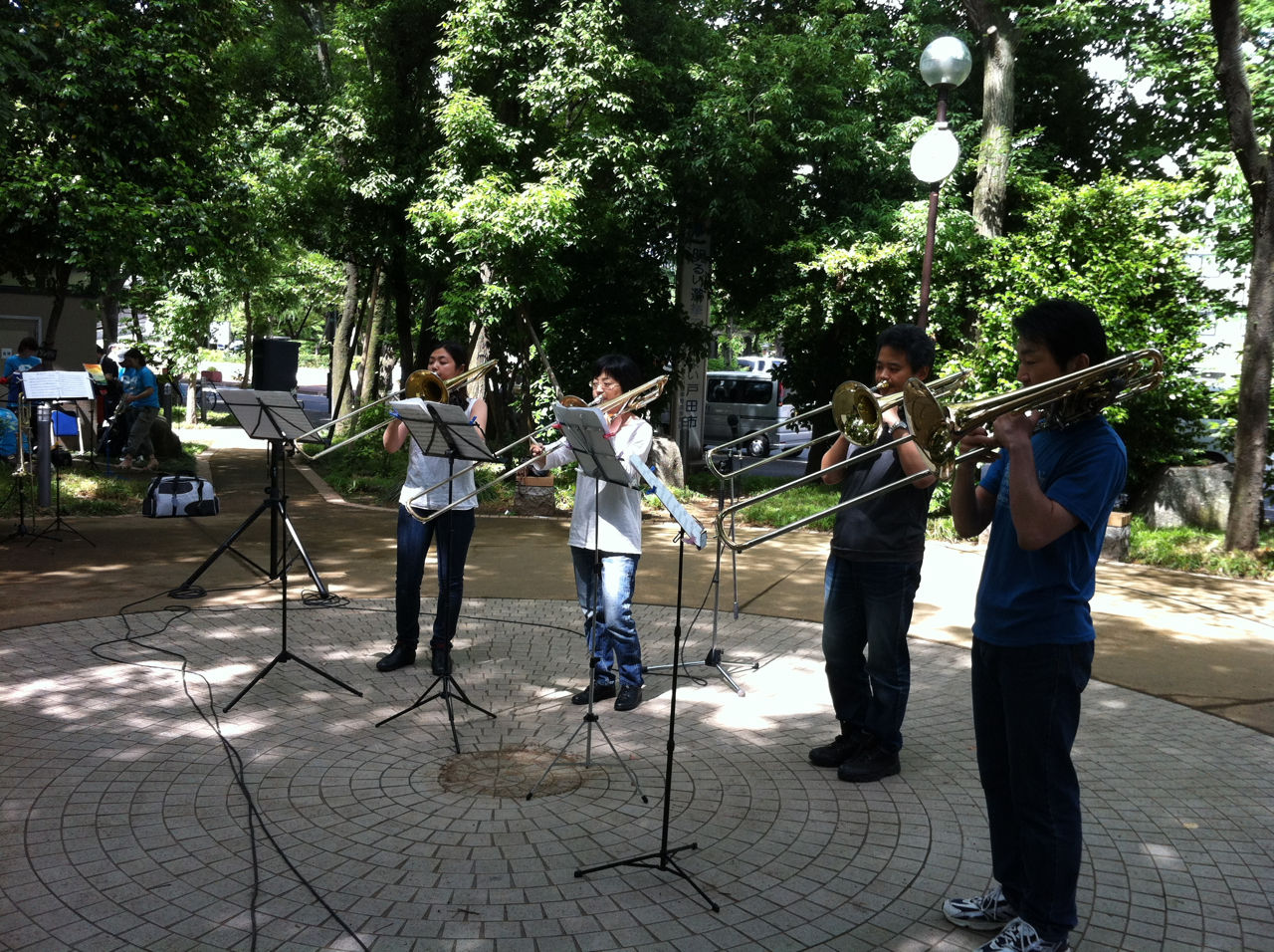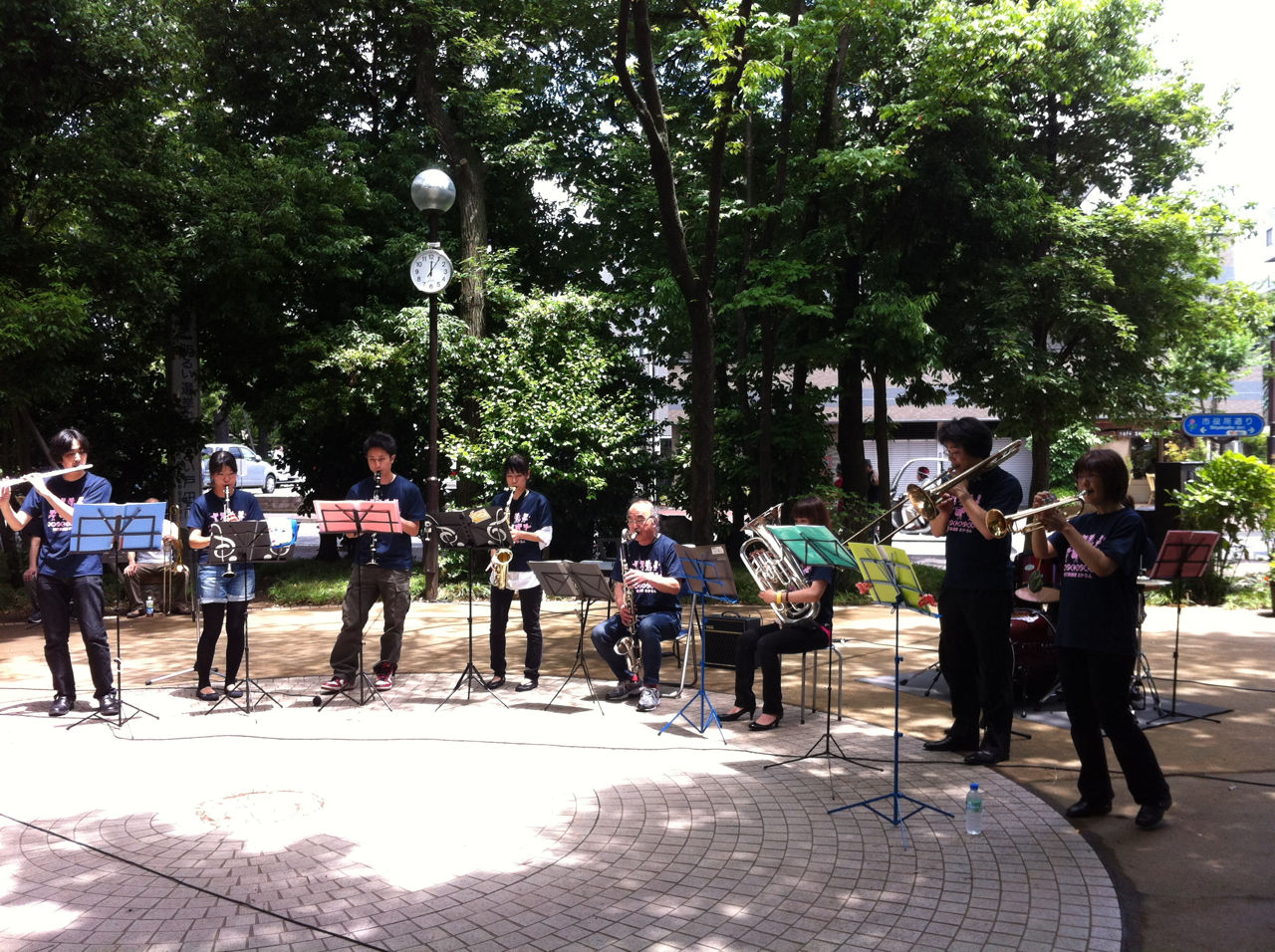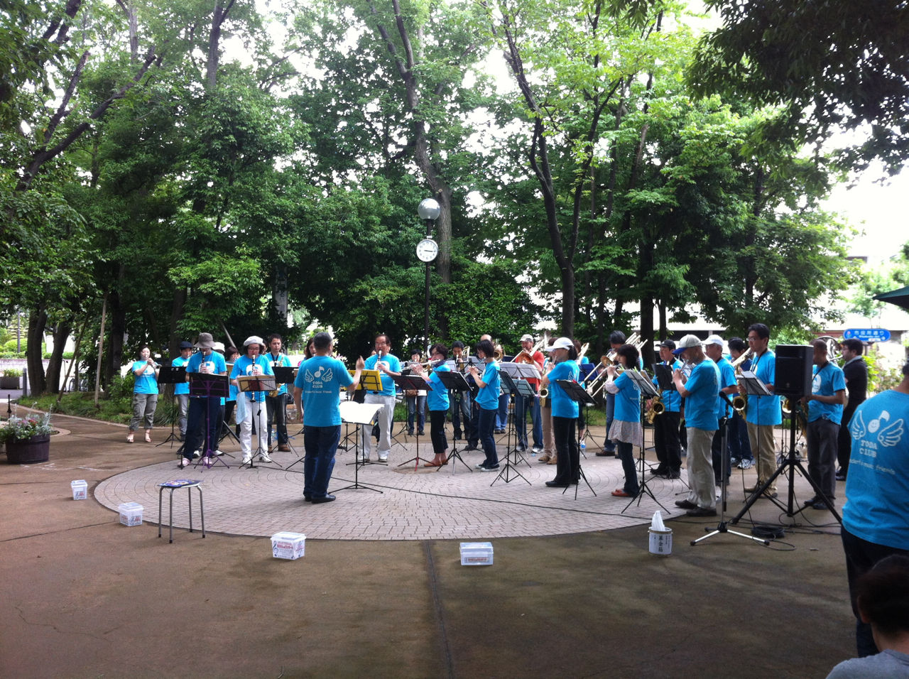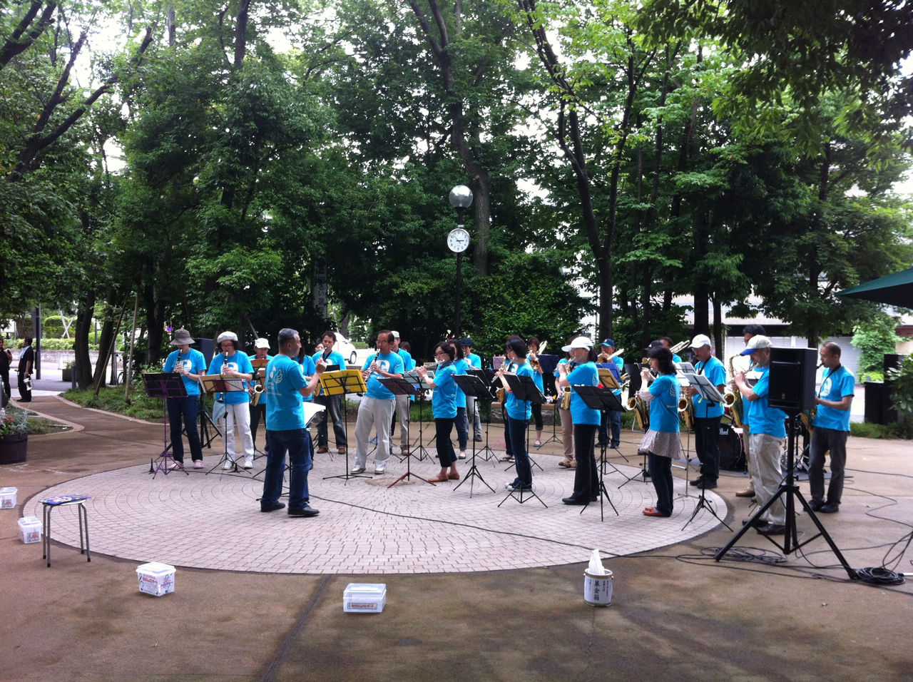 その後、再び11時半に後谷公園街角広場に集合し、音楽コンサートの設営にあたりました。