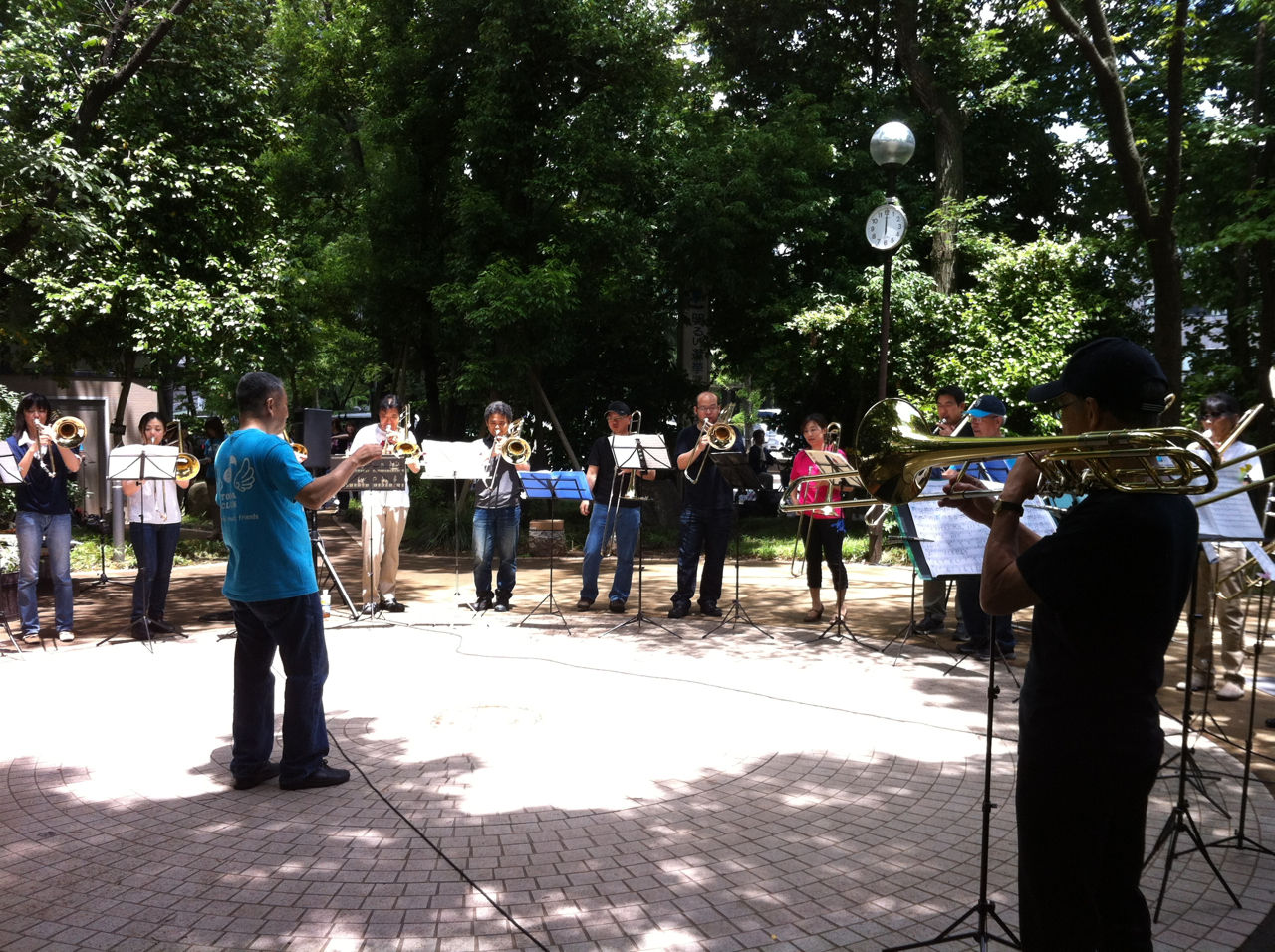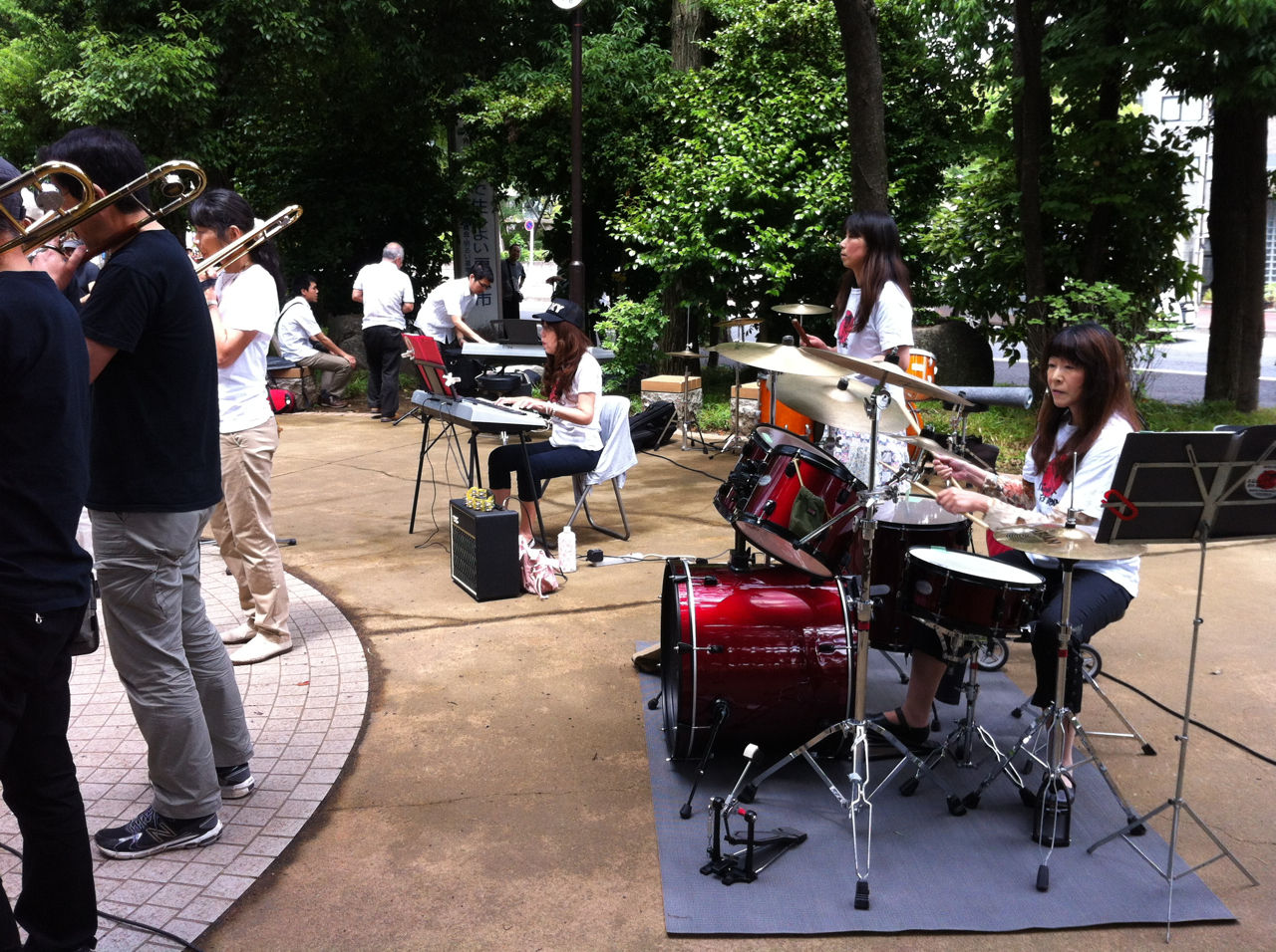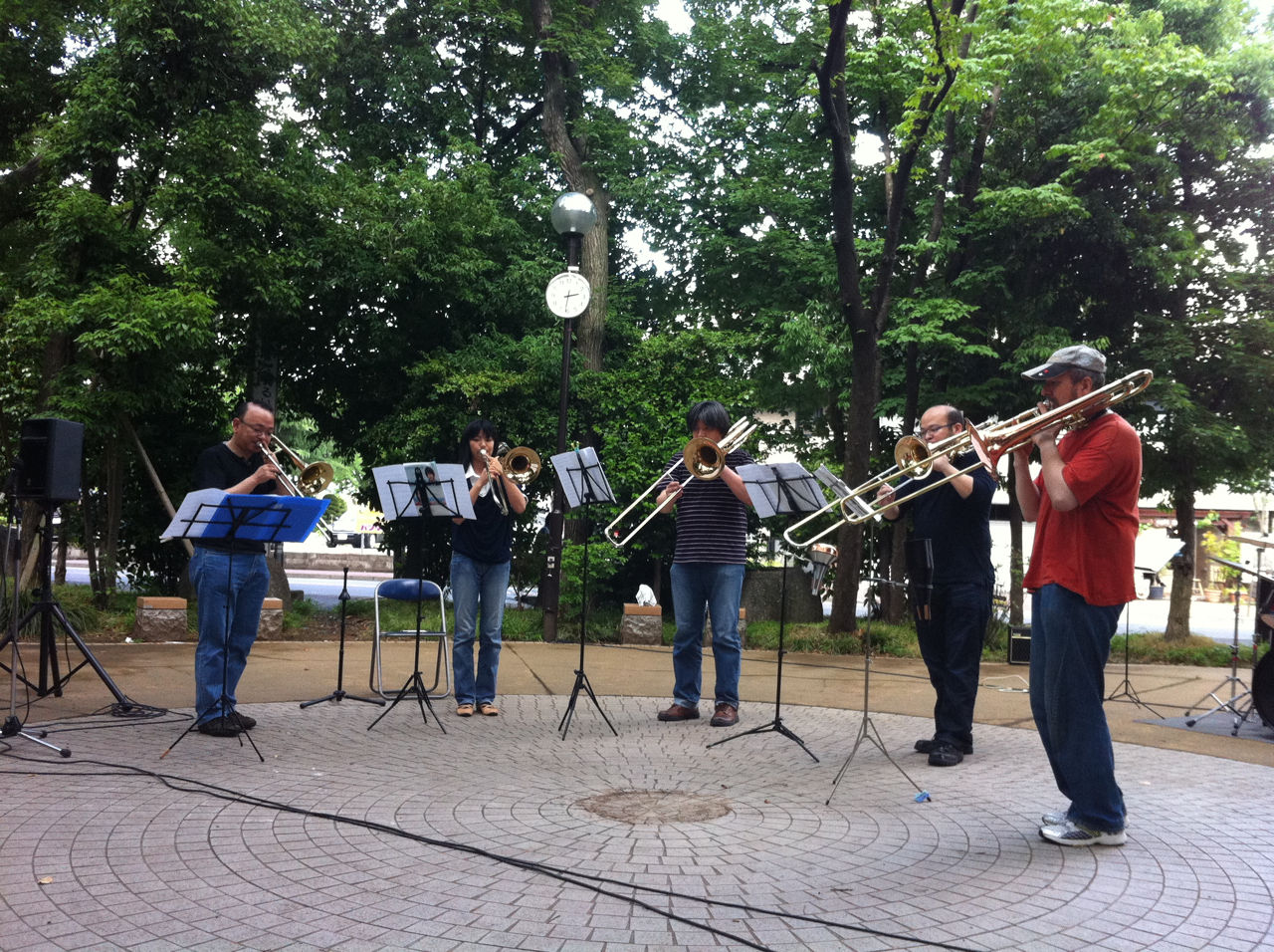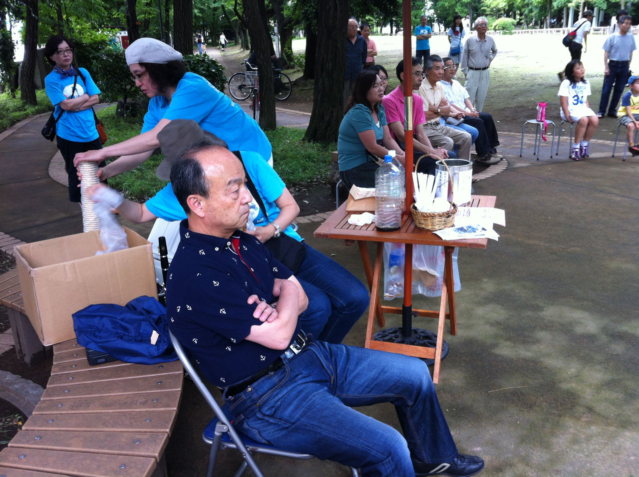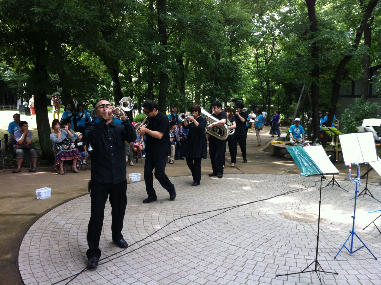 その後、再び11時半に後谷公園街角広場に集合し、音楽コンサートの設営にあたりました。