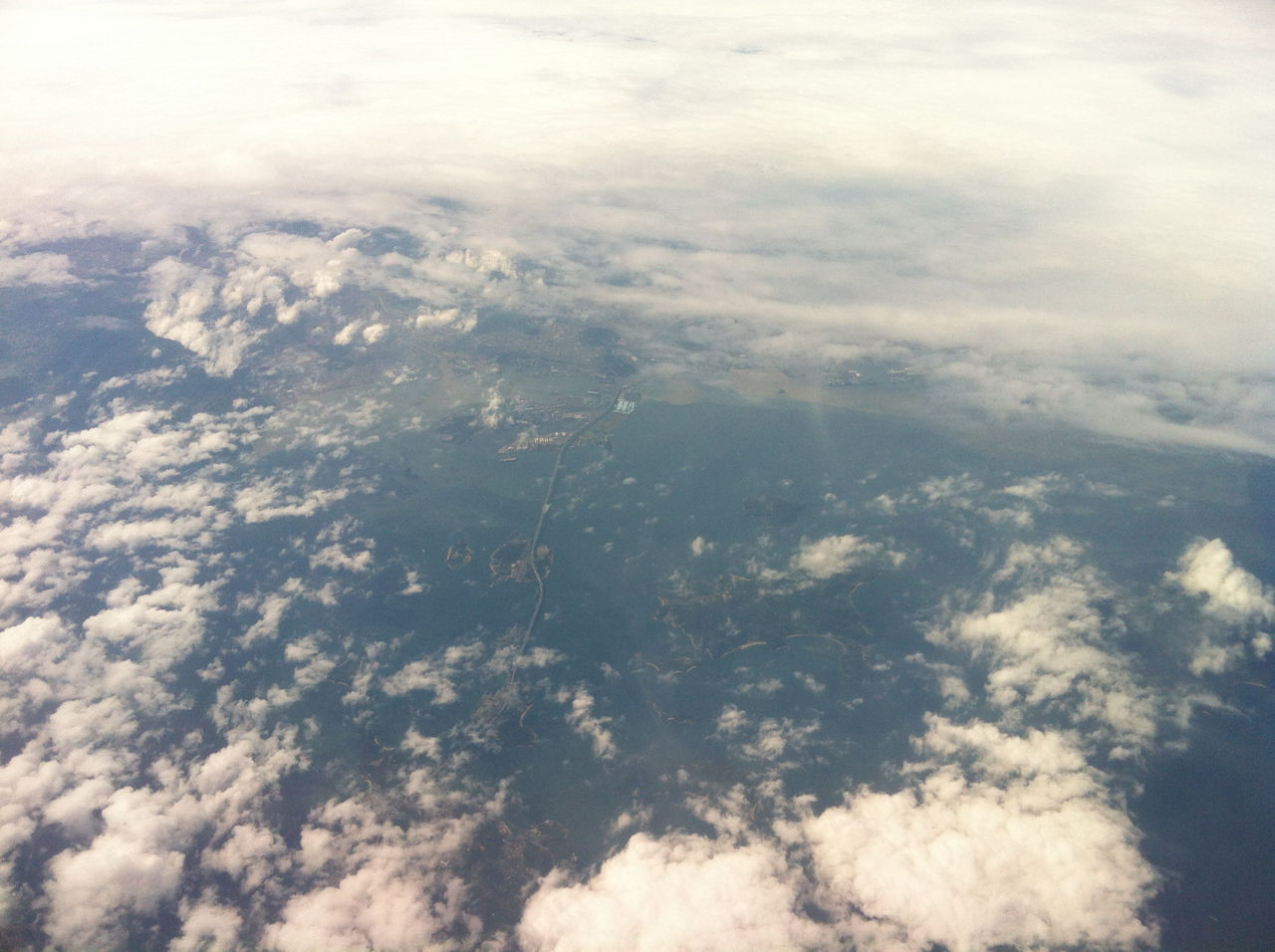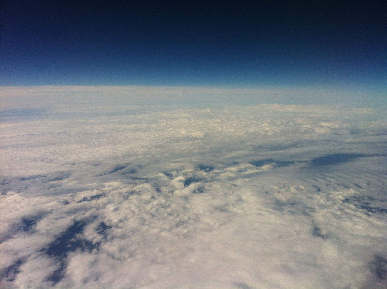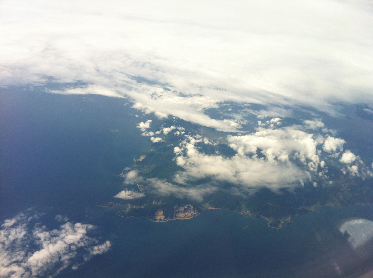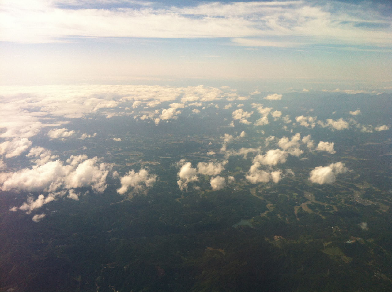 羽田を飛び立った飛行機から見下ろす地上は、岡山あたりまでずっと雲の絨毯が広がっていました。