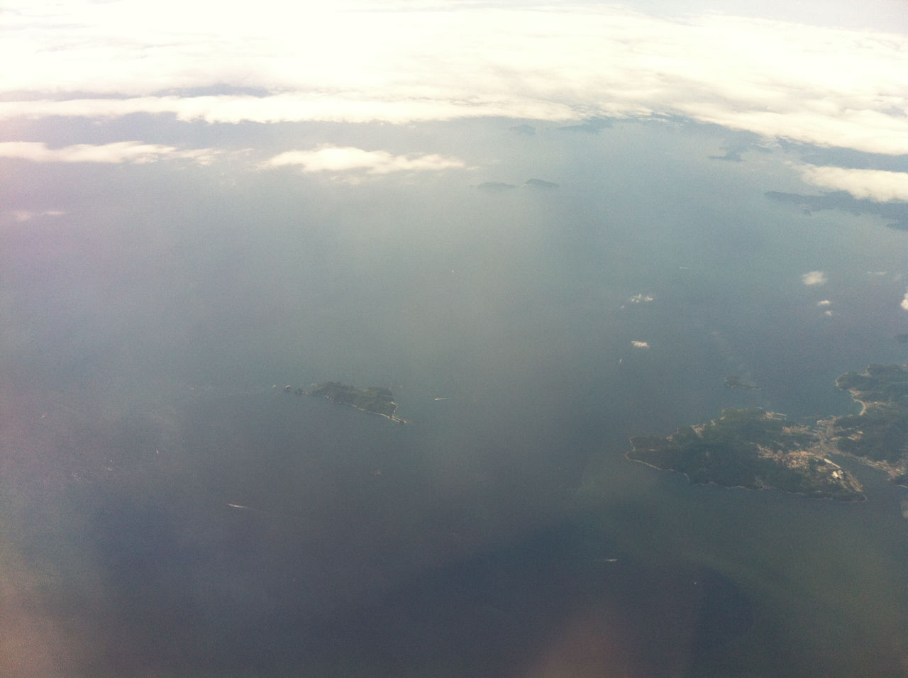 岡山から広島。瀬戸内海に浮かぶ島が見えました。
