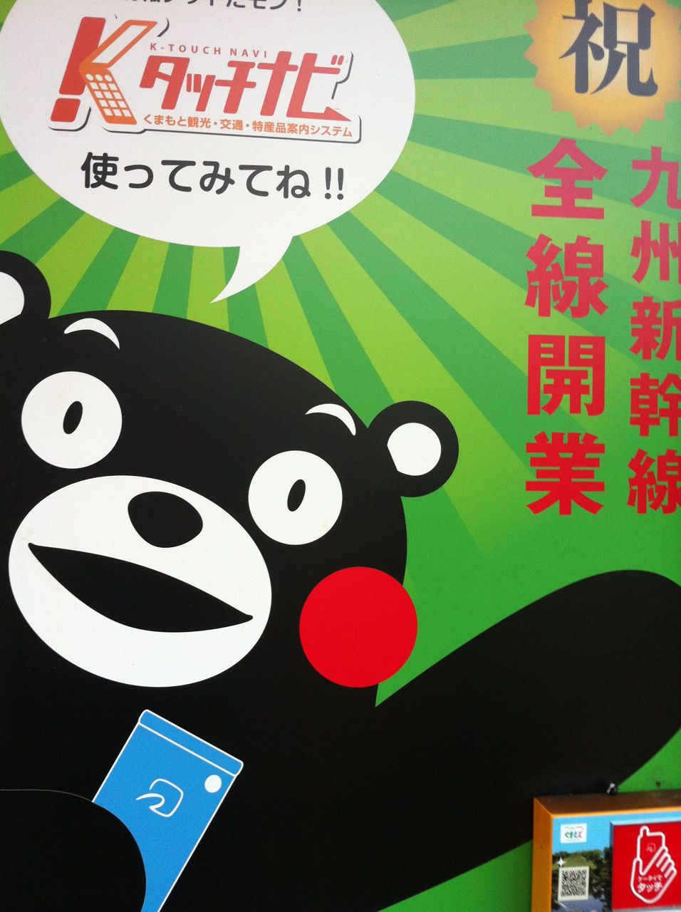 熊本はやはりまちのあちらこちらにくまモンの姿がありました。このキャラは見れば見るほど好きになります(白目が大きすぎる!とおっしゃる方もおられますが)。
