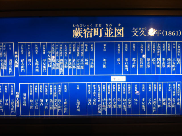 まず、中山道に面する蕨宿の家々の中に「百姓」の家があったこと。私は宿場なので旅籠とか商店ばかりかと思っていたのですが(不勉強ですみません)、ちゃんと街道に面する宿場町の中に農家もあったのですね (とはいえ、家の規模も大きかったので庄屋さんでしょうが)。